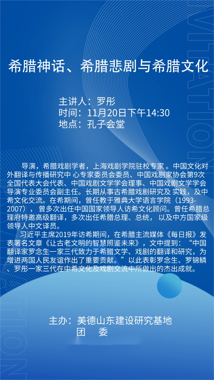 讲座预告| 罗彤:希腊神话、希腊悲剧与希腊文化