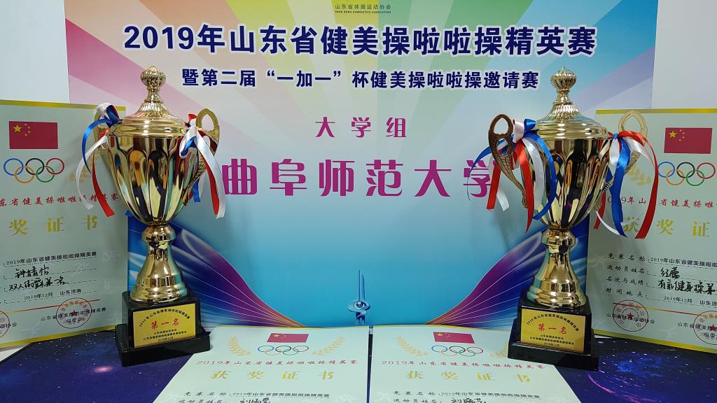 12月13日至15日,2019年山东省健美操啦啦操精英赛在济南火热开赛。本次比赛由山东省体操运动协会主办,近千名运动员参赛。万象城手机网页版登录入口代表队在体育教学部负责人带领下,取得优异成绩:钟婧怡、刘雨蒙同学在大学组双人街舞比赛中荣获第一名;纪蕾、刘晓艺同学荣获大学组双人有氧操第一名。