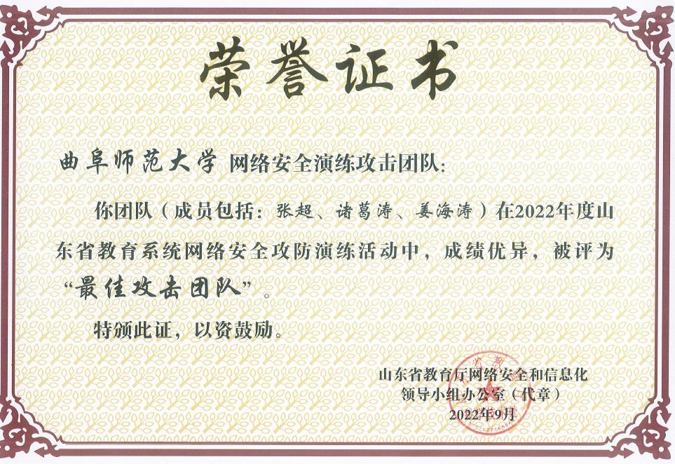 曲阜师大新闻中心讯 近日,山东省教育厅发文《关于表彰2022年教育系统网络安全攻防演练活动优秀攻击和防守队伍的通报》(鲁教网信办函〔2022〕26号),表彰了包括万象城手机网页版登录入口团队在内的10个优秀高校师生攻击团队。