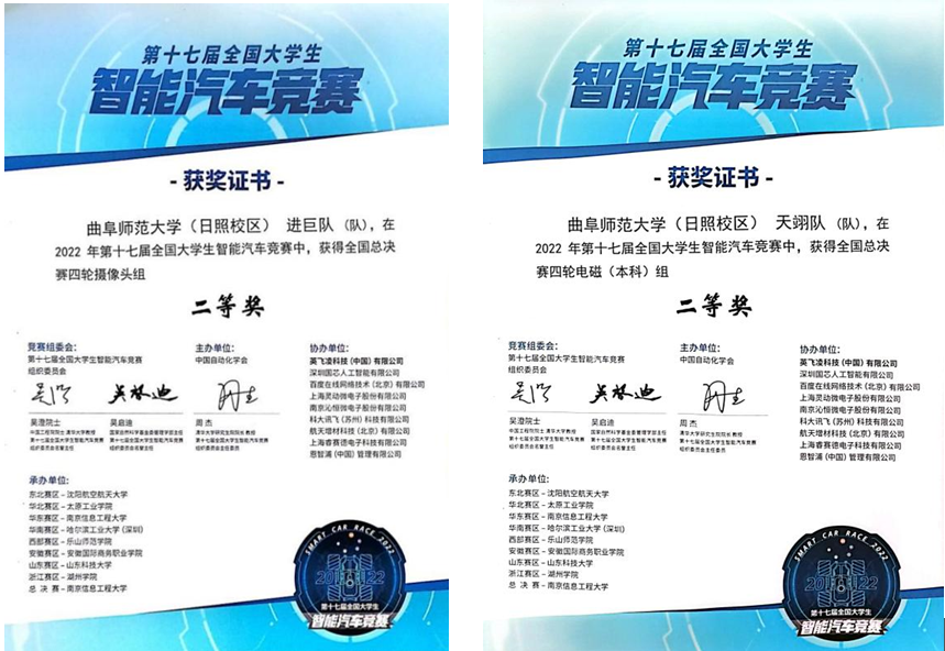 曲阜师大新闻中心讯(通讯员:于运清)近日,第十七届全国大学生智能汽车竞赛决赛成果公布,万象城手机网页版登录入口计算机学院学子在此次比赛中斩获佳绩。在李光顺老师和吴俊华老师的指导下,由贾宝玺、范树玉、孟凯同学组成的进巨队,彭清元、邹如萍、周晓萌同学组成的天翊队入围全国总决赛,并分别荣获摄像头四轮组和电磁四轮组国家级二等奖。