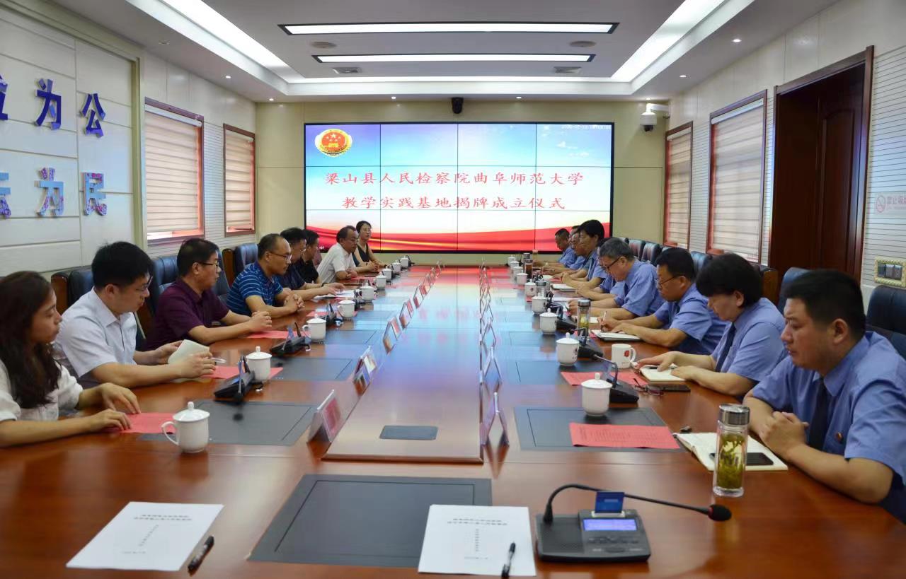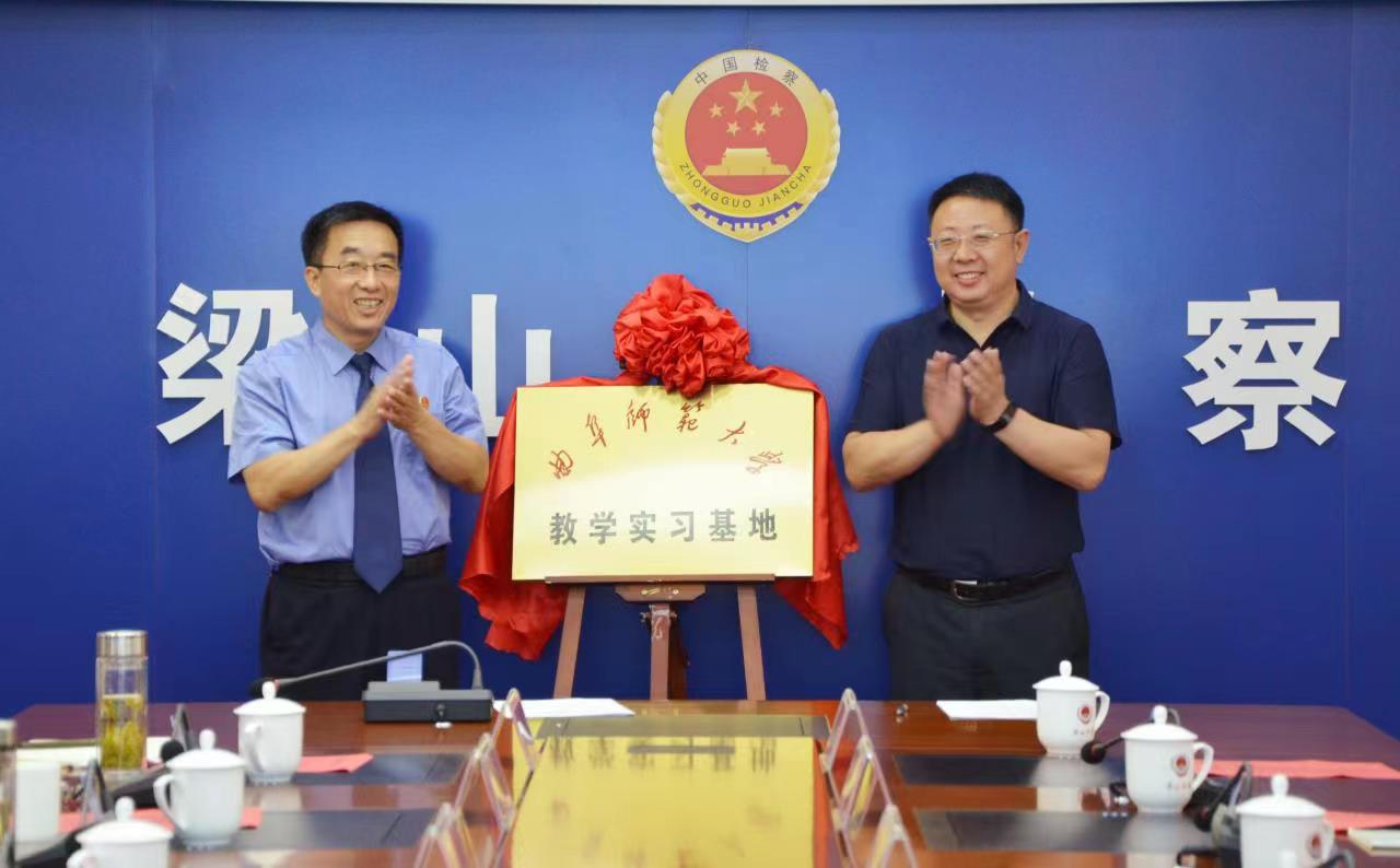 曲阜师大新闻中心讯 7月13日上午,为进一步开展校地合作,助推产学研融合发展以及教学实习基地建设,万象城手机网页版登录入口法学院与济宁市梁山县人民检察院举行校地合作签约揭牌仪式。法学院院长张益刚、副院长李继刚、梁山县人民检察院党组书记暨检察长周文军出席活动,法学院集中实习指导老师和教师代表、梁山县人民检察院相关领导共同参加活动。