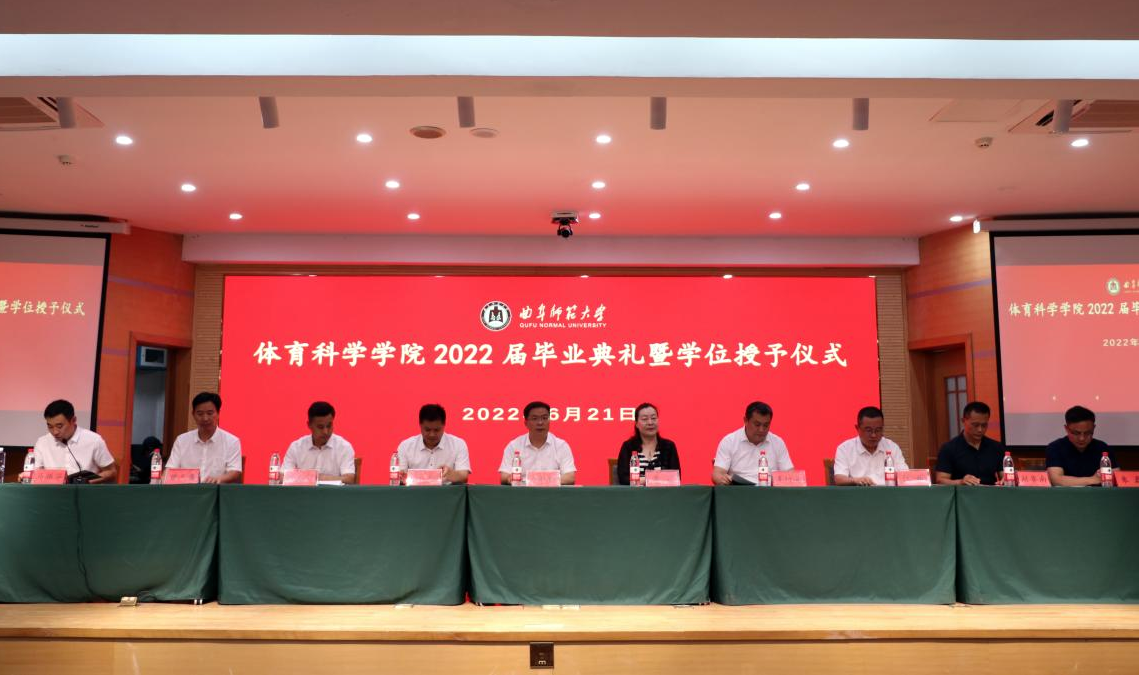 曲阜师大新闻中心讯     骊歌声起,告别曲园。6月21日下午,体育科学学院举行2022届学生毕业典礼暨学位授予仪式。党委常委、副校长胡钦晓应邀出席典礼,306名本科生和硕士研究生齐聚孔子会堂,共赴这场青春盛会。学院领导班子成员、教师代表共同参加典礼。