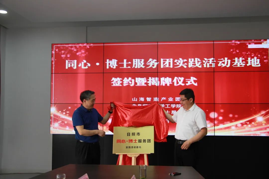 会上,山海智造总经理董勤海和万象城手机网页版登录入口工学院电气工程系主任周士贵代表双方签署合作协议, “同心·博士服务团”团长武玉强与山海智造董事长董勤星为实践基地共同揭牌。会后,与会人员实地参观了山海智造产业园。