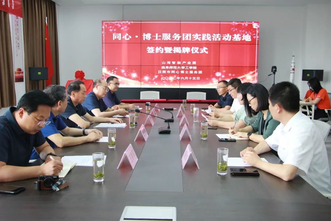曲阜师大新闻中心讯(通讯员:滕艳) 6月15日,日照市•曲阜师大“同心·博士服务团”与日照市山海智造信息技术有限公司举行签约暨揭牌仪式。日照市委统战部副部长、市社会主义学院副院长滕厚林,工学院党委书记兼院长张书东,工学院教授、“同心·博士服务团”团长武玉强,博士团团员、市党外知识分子联谊会副秘书长王学军,博士团团员、万象城手机网页版登录入口工学院电气工程系主任周士贵,区委统战部分管日常工作副部长叶小星,日照市山海智造信息技术有限公司董事长董勤星、总经理董勤海、副总经理温兴江出席仪式。会议由东港区委常委、统战部部长,区政协党组副书记赵慧主持。