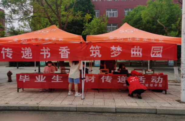 各学院同心协力,积极参与。文学院与历史文化学院在楼前携手开展捐书活动,两院领导作为捐书“代言人”现场宣传,校团委书记孔轶众来到现场嘱托毕业生,希望他们在新征程上做有梦想、做实事的好青年。活动进行时,各学院不断优化举措,合理分配。数学科学学院和化学与化工学院扩大捐书主体,分别面向毕业生和全体本科生群体,于5月22日、6月4日分两批次错时征集书籍,并结合毕业生住宿地点与时间安排,灵活安排收书的时间地点,安排“专人专班”深入宿舍,并提前借好三轮车等运送工具在宿舍楼下等候,把书籍运送到学院,提高了书本的收集率;地理与旅游学院和生命科学学院举办了“传递书香,筑梦曲园”线下捐书仪式,毕业生们将自己的课本传递给师弟师妹,并在活动KT板上签名留念。多种多样的捐书方式增强了毕业生捐书的仪式感和自豪感。