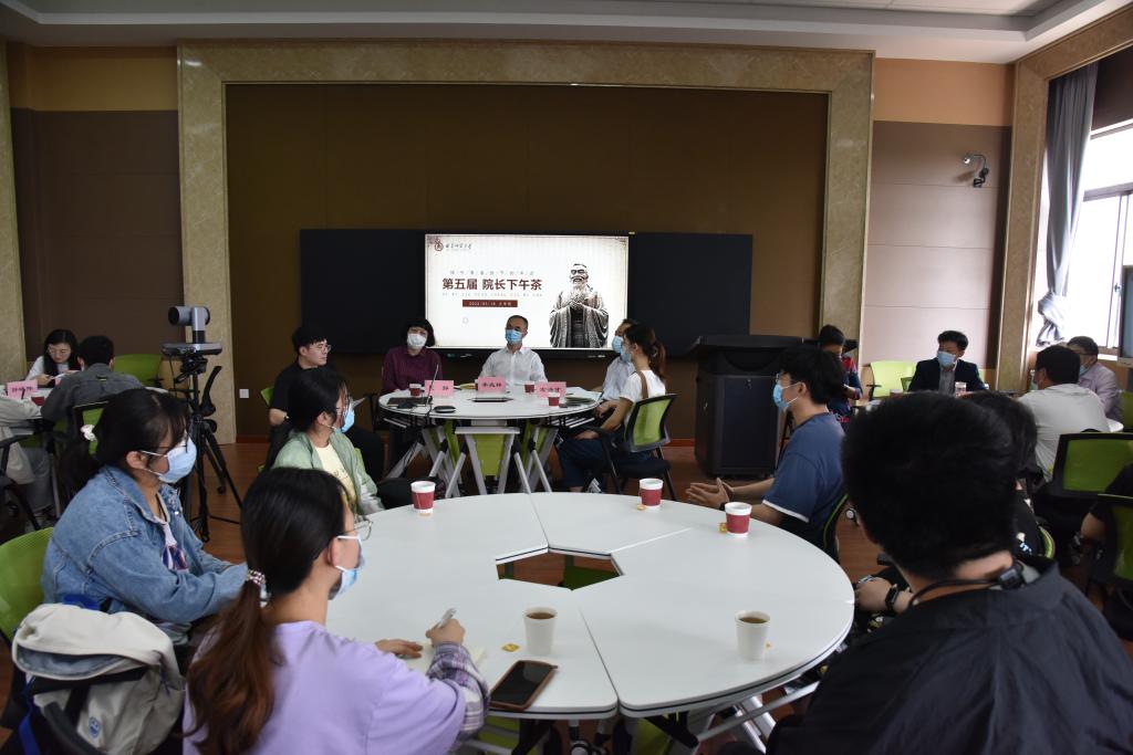 曲阜师大新闻中心讯(通讯员:冯萌萌   摄影:孙盈盈   孙晓伟) 为进一步贯彻“以本为本”“学生中心”的教育理念、深化学院新文科背景下汉语言文学和戏剧影视文学国家级双一流本科专业内涵建设,擦亮学院本科教育金字品牌,践行立德树人、为国弘文的从教初心,5月18日下午,文学院第五届“倾听青春拔节的声音——院长下午茶”师生恳谈活动举行。副校长李兆祥教授,文学院党委书记左兴才,院长夏静教授,党委副书记曲媛媛,副院长杨新刚教授,国家语言文字推广基地副主任霍俊国副教授,教师代表冯萌萌、孙晓伟与文学院学生代表手捧一杯香茗,围坐一起,畅所欲言,交流大学的学习与生活。