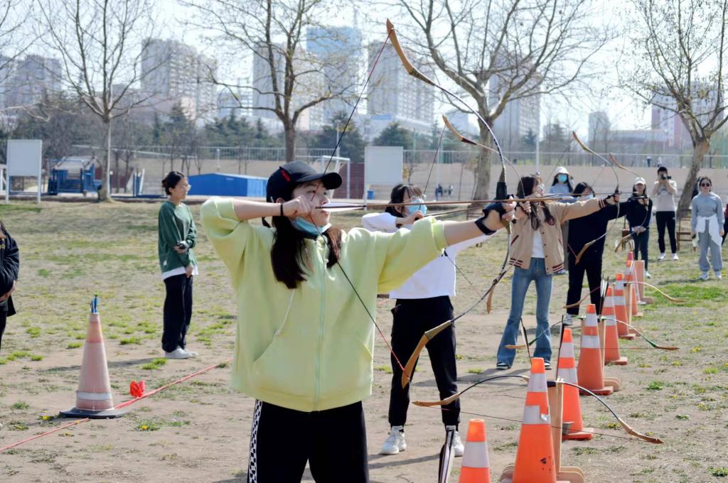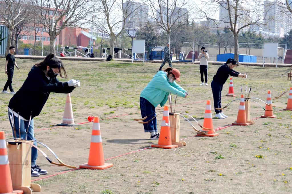 从就位、揖让到举弓、瞄准、撒放,同学们整套动作一气呵成。“弓开如秋月行天,箭去似流星落地”,随着一支支利箭破空,日照校区西射艺场地成为了名副其实的“众矢之地”,参赛者也在欢声笑语中,感受了传统射箭运动的独特魅力。