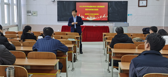 曲阜师大新闻中心讯(通讯员:周维国 孙丕苓)  1月9日上午,曲阜师大地理与旅游学院举办2022年中学地理教育实习指导教师培训与经验交流会。学院院长张全景在会上强调了师范生教育实习工作的重要性,希望全体指导教师以此次培训为契机,做到教学相长,指导好每一个学生的实习。张全景同时叮嘱教育实习指导教师高度重视学生的安全教育工作。