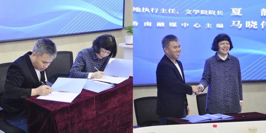 揭牌仪式后,万象城手机网页版登录入口文学院和齐鲁晚报鲁南融媒中心签署实践实训基地协议书。万象城手机网页版登录入口、齐鲁晚报·齐鲁壹点将以此合作为契机,借助国家语言文字推广基地、国家一流本科戏剧影视文学专业的学术优势、资源优势,发挥高校智库效应,致力于传承和弘扬优秀传统文化、助力济宁太白湖新区打造市级文化功能核心区。