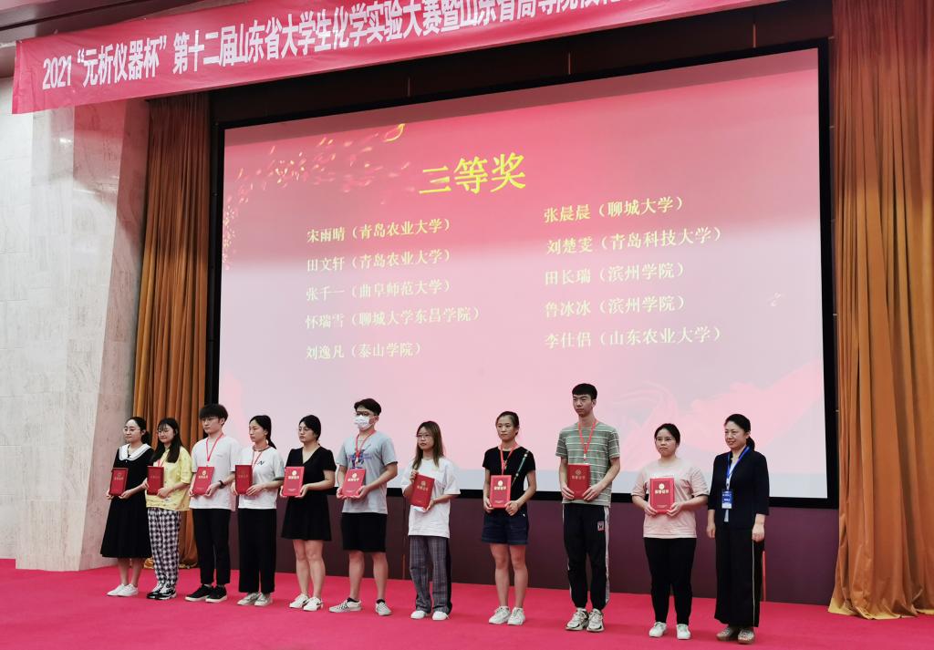 曲阜师大新闻中心讯 2021年7月19日至22日,“元析仪器杯”第十二届山东省大学生化学实验大赛在山东师范大学举行。代表万象城手机网页版登录入口参赛的三名选手在本届大赛中再获佳绩,李倩、陈欣宇同学获大赛一等奖;张千一同学获大赛二等奖。