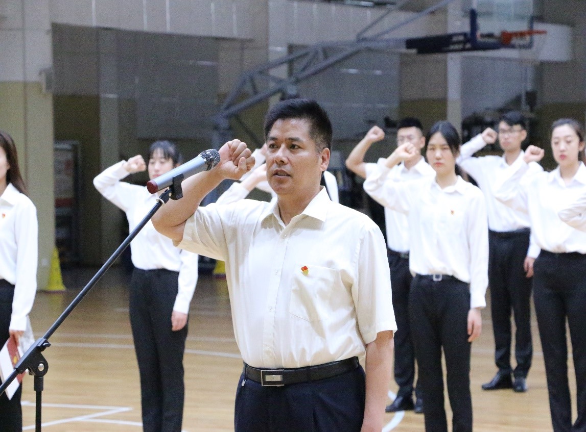 曲阜师大新闻中心讯 为庆祝中国共产党成立100周年,增强新党员党性意识,6月29日上午,体育科学学院举行新党员入党宣誓仪式。体育学部党委书记刘敏领誓并讲话,体育科学学院党委副书记展利民主持,各党支部书记出席。