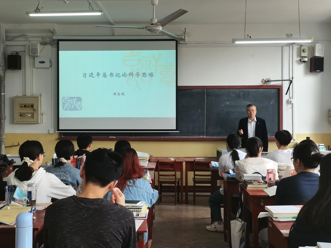 满忠晓以“习近平总书记论科学思维”为题,为2019级物理学4班讲授了思政课。满忠晓从辩证思维、战略思维、历史思维、创新思维、法治思维、系统思维和底线思维等方面详细讲解习近平总书记论科学思维的内容,勉励同学们辩证地观察、思考和处理问题。