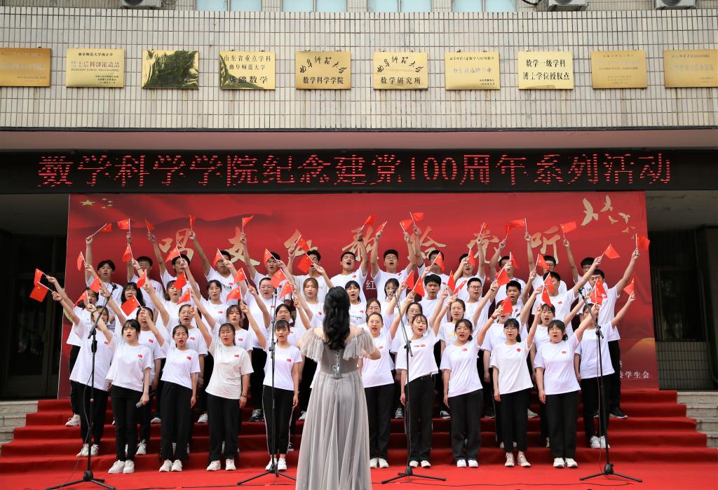 曲阜师大新闻中心讯(通讯员:王艺融 摄影:姚鹏飞)为庆祝建党100周年,弘扬中华民族伟大精神,增强班级凝聚力,5月23日,数学科学学院于数学楼前举行主题为“唱支红歌给党听”的红色班歌大赛。数学科学学院党委书记刘建新出席活动,学院党委副书记曲凤东、团委书记朱伟卫、学生处就业指导中心老师石璐,统计学院辅导员张庆伟,辅导员高思明担任本次比赛评委。