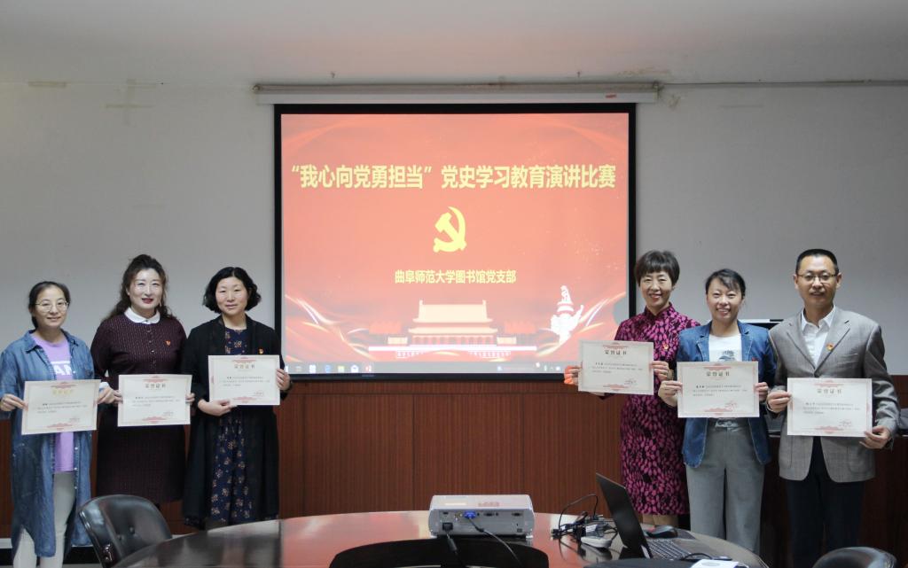 曲阜师大新闻中心讯(通讯员:程卫华 摄影:曹亚新)5月12日下午,图书馆举行“我心向党勇担当”党史学习教育演讲比赛。活动以党小组为单元进行人选推荐,共有六位党员参加本次比赛,图书馆党支部副书记张召生、党委宣传部黄江滔以及各党小组推荐的三位党员担任本次比赛的评委。