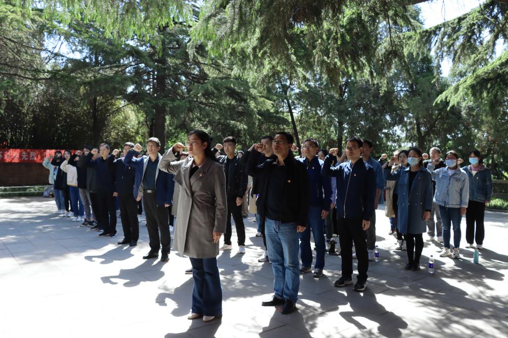 全体师生党员来到羊山革命烈士陵园,怀着庄严肃穆的心情,瞻仰了革命烈士公墓和烈士纪念塔,敬献花篮,鞠躬致敬,肃立默哀。面对鲜红的党旗,全体党员重温了入党誓词,铮铮誓言昭示了党员们不忘初心、牢记使命,为共产主义事业奋斗终身的坚定信念。