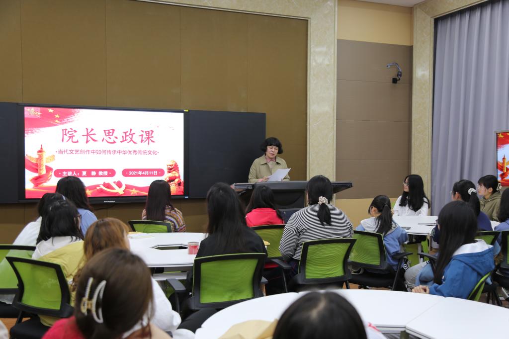 不忘初心方能远行。课上,夏静教授首先对习总书记文艺思想进行了深入浅出、全面系统的讲解。实现中华民族伟大复兴需要中华文化繁荣兴盛,文艺是时代前进的号角,文艺创作必须以人民为中心,方能创作出无愧于时代的优秀作品。接着,夏院长扼要介绍了其参与策划的央视大型电视纪录片《记住乡愁》的基本情况和创作理念,并以《盐官古城——钱塘古韵,猛进如潮》为例,从乡愁、乡情、文化、初心、传承等多个方面,详尽阐释了当代文艺创作如何传承中华优秀传统文化的问题。夏院长指出,历经百年的中国共产党蕴藏着浓浓的“红色乡愁”,大家可以在追寻“乡愁”的过程中,学习党的奋斗历史,传承红色基因。