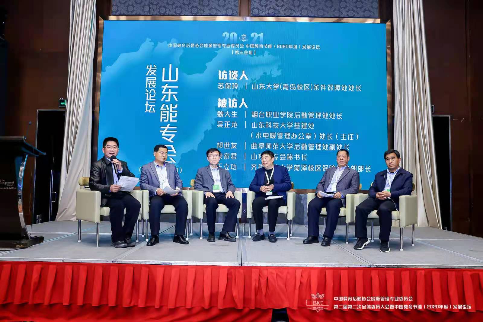 4 月 11日至12日,中国教育后勤协会能源管理专业委员会(以下简称能专会)第二届第二次全体委员大会暨中国教育节能 (2020 年度)发展论坛在上海举行,来自全国300余所高校后勤系统及企业会员单位代表600余人参加。我校后勤管理处副处长祁世友参加会议,并在山东能专会发展论坛上受访发言。