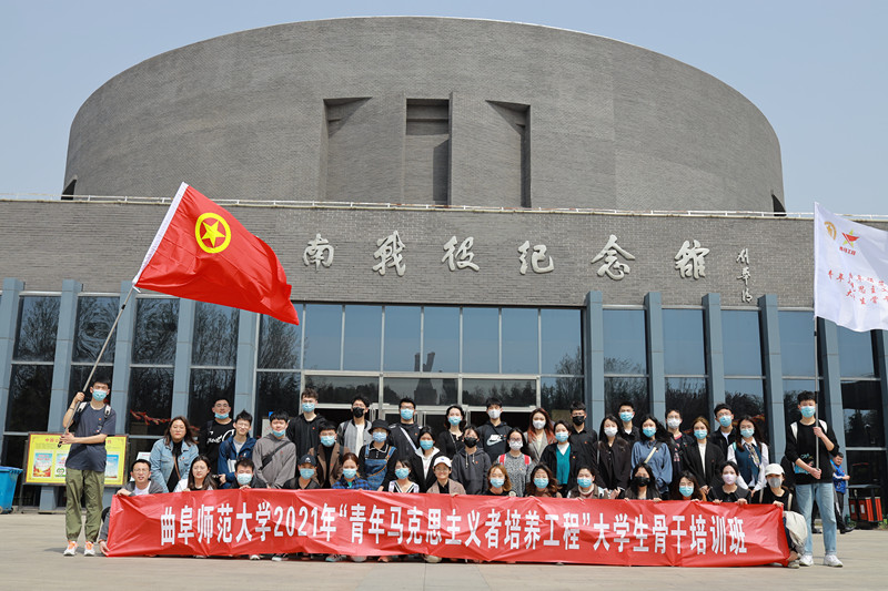 曲阜师大新闻中心讯3月28日上午,校团委组织开展2021年“青马工程”大学生骨干培训班实践教学活动。团委副书记孔轶众、刘蓉,团委宣传部长马腾,团委组织部副部长刘翔,以及我校青马学员共同参加活动。