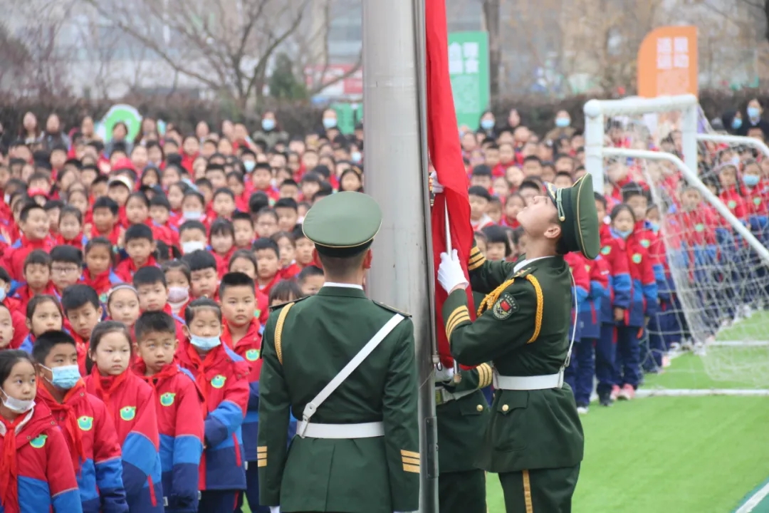 活动伊始,我校19名国旗护卫队队员组成的护旗队护送鲜艳的五星红旗入场。国旗下,少先队员们以稚嫩、纯净的童声,表达了对五星红旗的无限热爱之情,并向国旗护卫队队员敬献红领巾。国旗护卫队队员于旭晨以《一次仰望,便是终身信仰》为题发表演讲,鼓励少先队员们热爱国旗,好好学习,用实际行动捍卫国旗的尊严,践行爱国主义精神。仪式结束后,我校国旗护卫队给新营小学国旗护卫队做了细致的培训,并进行了《五星红旗 我来守护》专题教育,传递了爱旗护旗使命。