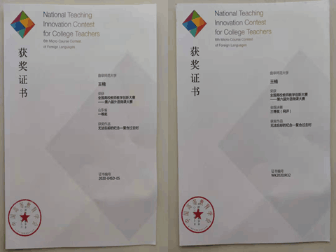 曲阜师大新闻中心讯(通讯员:秦艳)近日,全国高校教师教学创新大赛——第六届外语微课大赛顺利落下帷幕。本次大赛由中国高等教育学会与高等教育出版社和教育部高等学校大学外语教学指导委员会联合举办。我校翻译学院青年教师王楠荣获山东省一等奖,全国决赛三等奖。这是王楠老师第二次获此殊荣。