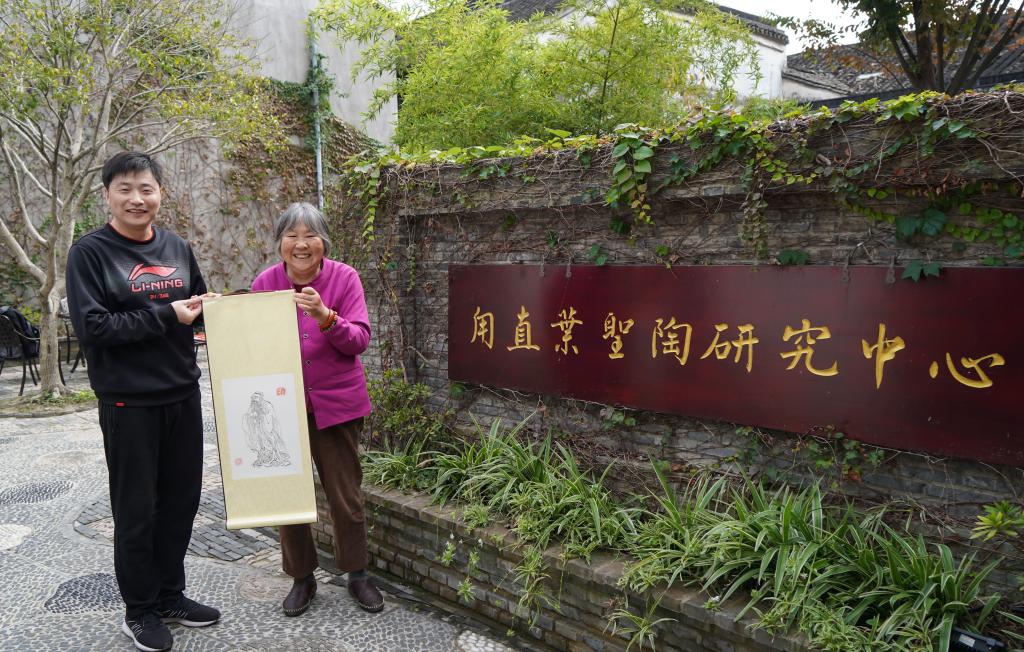 在叶圣陶研究中心,大家拜访了前来参加首届圣陶文化节活动的叶圣陶孙女叶小沫女士、孙子叶永和先生。座谈中,刘永简要介绍了教师博物馆各方面的筹建工作及叶圣陶专题馆的功能特色、馆舍规划、陈列大纲、藏品分类等概况和下一步建设的相关思路。叶小沫女士听到教师博物馆把叶圣陶先生邀请进名师堂非常高兴,高度赞扬万象城手机网页版登录入口创建中国首座以教师文化为主题,以师德教育为特色的博物馆是实至名归,她希望教师博物馆打造叶圣陶教育思想实践基地,讲好名师故事,弘扬传承名师精神,让前来学习参观的老师像叶圣陶先生那样教书育人。主客双方就叶圣陶专题馆定位与特色、藏品借展复制等事宜进行了沟通与交流。