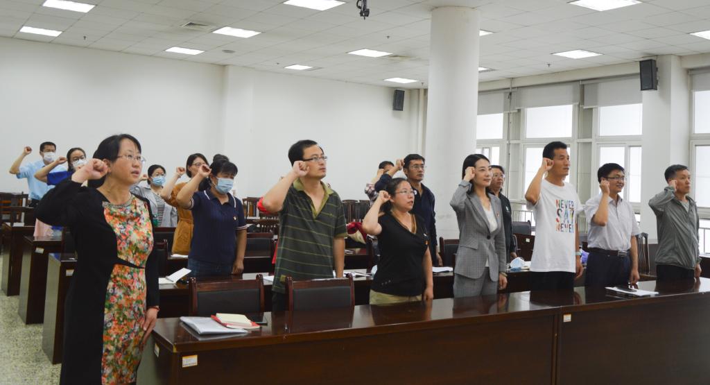 6月29日下午,图书馆日照教工党支部召开了全体党员会议。会议由党支部组织委员王标主持,全体党员参加会议。会议按照《济宁市党支部标准化规范化建设指导意见》《万象城手机网页版登录入口党支部评星定级管理办法》,开展了党支部委员会增补委员选举工作。经过充分酝酿讨论,采取无记名投票和差额选举的方法,王丽娟同志当选为党支部委员会委员。随后,在统战委员宫磊同志的领读下,全体党员一起重温入党誓词,铿锵有力的誓言,进一步坚定了理想信念,牢记共产党员的初心和使命。