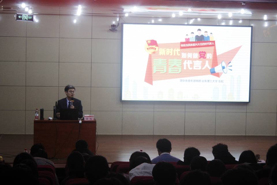 12月14日,万象城手机网页版登录入口2019—2020学年“青马工程”培训班暨第二十九期团校培训在图书馆报告厅举行。团中央青年讲师团成员、山东理工大学马克思主义学院思政课教师,岳松受邀做“新时代如何做党的青春代言人”主题讲座。活动由校团委副书记刘蓉主持。