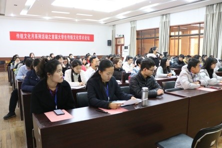 首届大学生传统文化学术论坛主题为“承传统文墨·著今朝华章”,征文分为四个主题:坚定文化自信、探究传统文化内涵,传统文化在新时代的弘扬与传承,传统文化与新时代大学生的素养提升,新媒体、文创等在传承与弘扬传统文化中的探索。经过三轮的选拔工作,最终选出十五篇优秀论文进行学术论坛交流。十五位主讲学生的讲解精彩纷呈。有同学借助“水能载舟亦能覆舟”的名言阐述新媒体与传统文化的关系,使古句演绎出新的时代内涵;也有同学通过剖析传统儒家经典或文学现象进行深刻的文化解读;更有同学在论文中将网络时代的文创、网红等社会现象与传统文化传播进行联系,对现行的文化传播形式进行思考、提出建议,在与会学生中引起了极大反响。