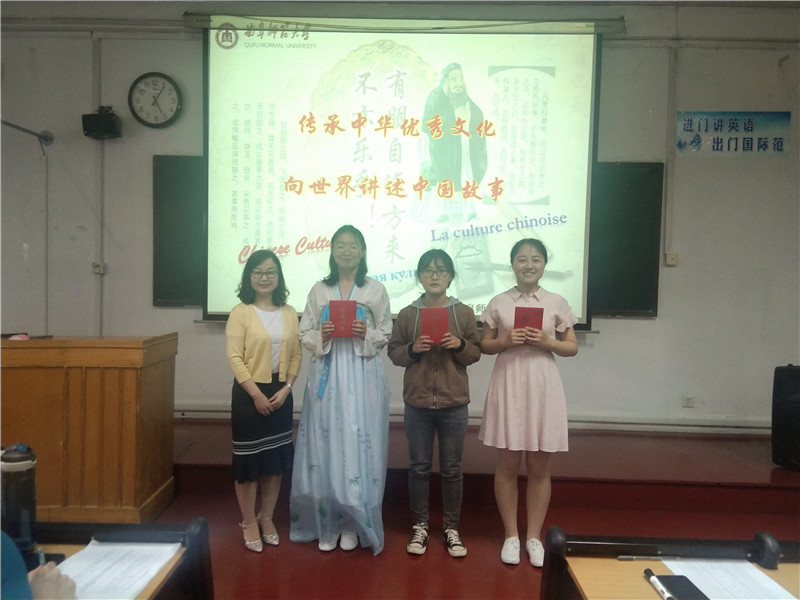 为提高学生用外语讲述中国故事的能力,树立中国文化自信,外国语学院于5月11日下午举办第一届“传承中华优秀文化,向世界讲述中国故事”多语演讲比赛。本次比赛邀请外国语学院马蓉教授、俄语外教娜捷日达·瓦西里耶夫娜•拉祖姆科娃、英语外教Dr.Kim Carter、俄语系韩英旭老师、法语系周昌浩老师和来自加拿大的留学生Ely担任评委。外国语学院英语系主任高歌老师为本次比赛的指导老师。