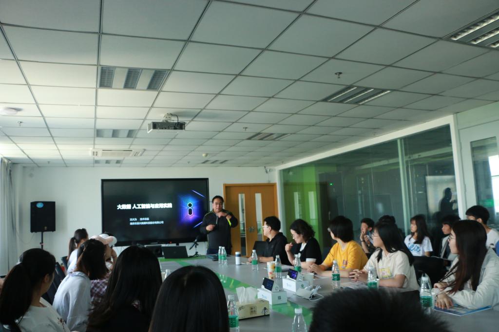 南京云创大数据科技股份有限公司是专业从事云计算、云存储领域研发、产品销售及云服务的高新技术科技企业。在云创大数据公司,同学们依次参观了企业办公环境,听取了行业、企业讲座和一线员工经验分享,并进行了热烈的互动交流。在交流座谈中,沈大伟总监除了同学们介绍了云创企业概况之外,还对云创在智能视频监控、智能视频教学以及大数据综合应用等方面的案例成果进行了详细介绍,讲述了人工智能以及大数据的发展历程以及光明前景。