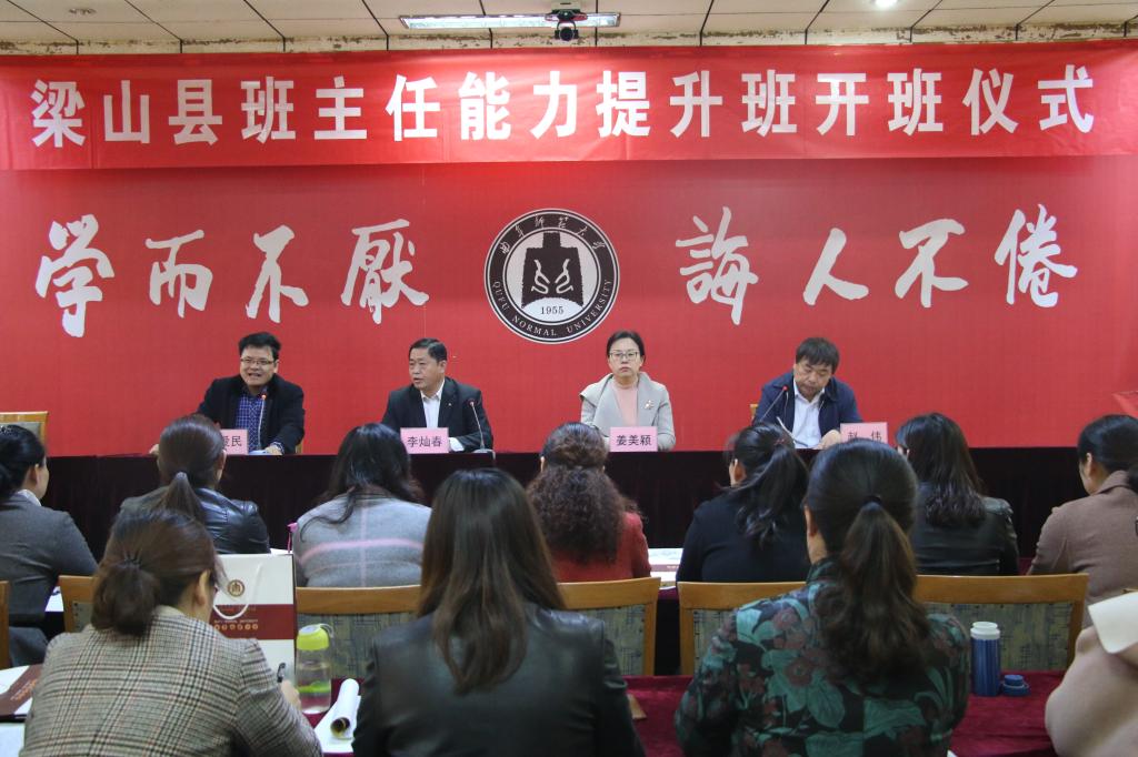 4月13日,教育学院举办的梁山县班主任能力提升班如期开班,教育学院党委书记姜美颖、院长唐爱民、梁山县教体局领导和来自梁山县的134名中小学班主任参加了开班仪式。开班仪式由教体局政工科科长赵伟主持。