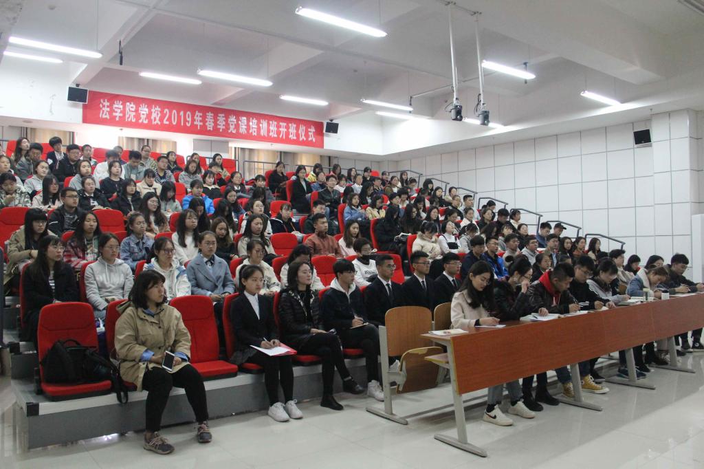 4月10日下午,我校法学院党校2019年春季培训班开班仪式顺利举行。法学院党委书记、党校校长曹明亮,党委副书记、学生党支部书记卢瑞霞,团委书记马振华,党委组织员、党校办公室主任赵谦出席仪式。法学院部分学生党员、本期入党积极分子共126名学生参加了开班仪式。