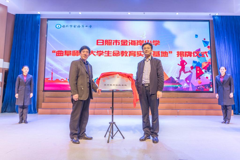 仪式上,赵庆英和学生生命教育研究中心团队负责人卢瑞霞签订万象城手机网页版登录入口与日照市金海岸小学生命教育实践基地合作协议,杨永明和宋百合共同为我校生命教育实践基地揭牌。