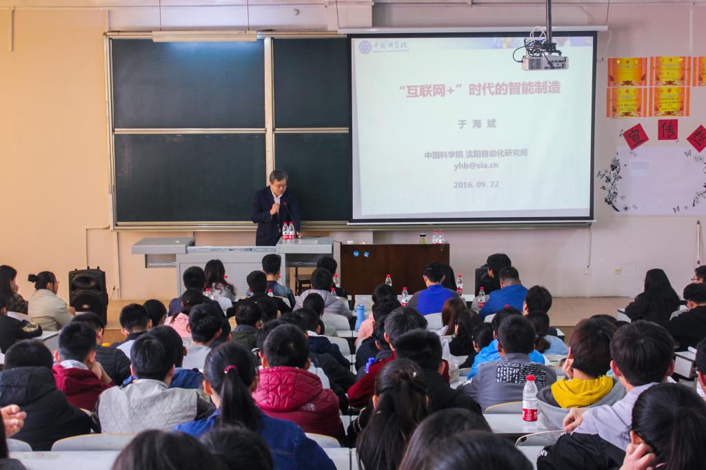 4月2日下午2:30,中科院沈阳自动化研究所所长于海斌教授来我校工学院作了题为《“‘互联网+时代’的智能制造”》的主题报告,工学院院长武玉强教授,学院部分青年教师及研究生、本科生参加报告会。