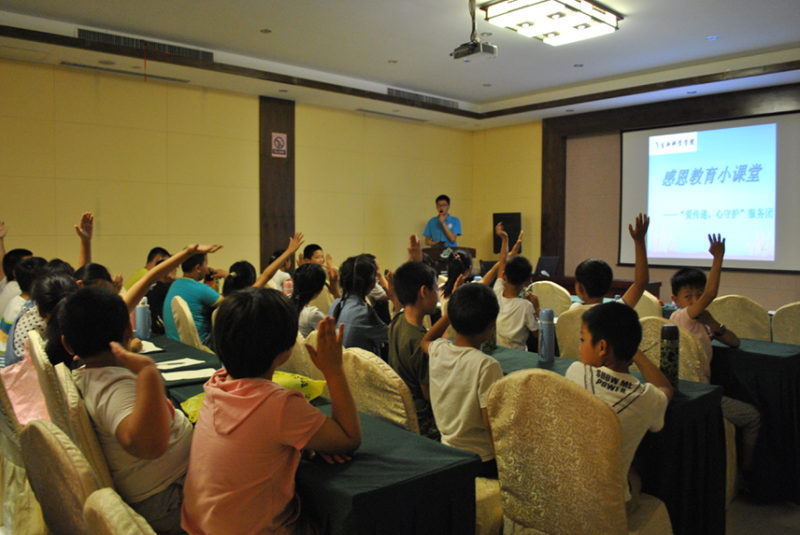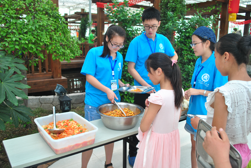 7月17日下午,服务团抵达田黄镇三仙山生态园,与田黄镇党委挂职副书记、下派工作队队长吕鹏完成对接。吕书记向服务团讲述了田黄镇的基本情况,并传达了田黄镇对开展此次留守儿童教育工作的重视以及对服务团的到来和三山集团对此次工作的支持的感谢。18日上午,夏令营正式开课。三山农业科技有限公司总经理任伟华当天代表三山集团向每一位留守儿童捐赠了爱心水杯,她包涵温情地告诉孩子们,“希望你们在以后用这个杯子喝水时,可以想起阿姨,想起此刻陪你们度过这个炎夏的大哥哥、大姐姐们。”在为期15天的夏令营活动中,服务团成员针对当地留守儿童的心理状态和实际情况,面向他们开展心理健康、生活安全、科普知识和艺术启蒙等课堂教育,此外,还利用三仙山生态园的条件优势带领他们进行户外野游、结合当地历史文化开展爱国教育。通过这些方式来引导留守儿童具备积极向上的心理素质,培养他们的学习兴趣、团结协作能力,促进留守儿童全面发展。整个夏令营期间,服务团采用学生分组管理的方式,保证了每一个孩子都能被照顾到,关心到。白天志愿者更是与孩子们同吃同住,与他们谈心、做朋友。31日上午,服务团成员组织举办了“我们永远在一起”文艺汇演,吕书记、任总经理以及部分孩子家长出席了本次汇演,志愿者和孩子们的精彩演出共同为此行留守儿童夏令营支教活动落下了圆满的帷幕。孩子们手捧服务团代表生命科学学院捐赠的图书,在泪水和不舍中与志愿者作别。