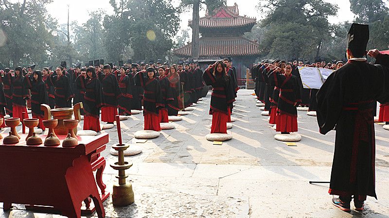 12月19日,由共青团曲阜市委主办的2015年“迈入青春门 走好成人路”曲阜市第二届百姓儒学节青少年十八岁成人礼活动在孔庙大成殿举行。我校72名学子参加了此次活动,文学院、历史文化学院、教师教育学院、化学与化工学院团总支书记及校团委老师参加仪式并为学子加冠加笄。