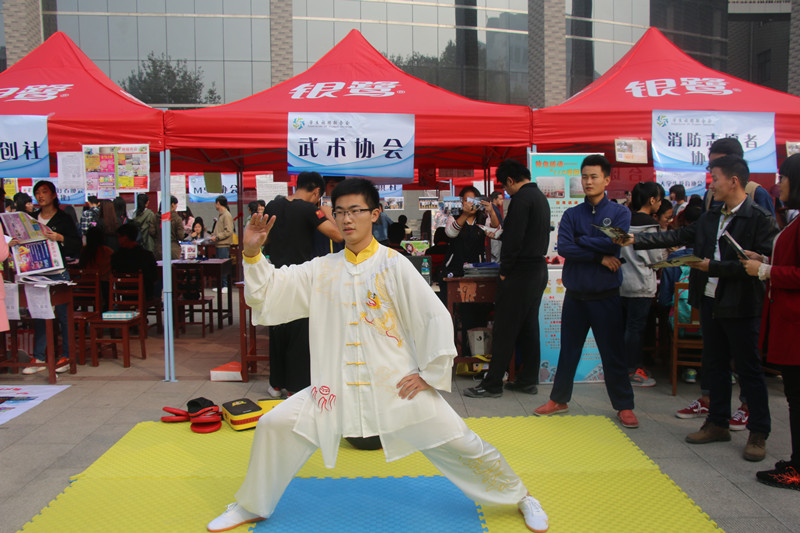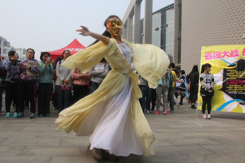 本次参与纳新的社团囊括了文体艺术、传统文化、科技创新、志愿服务等多个领域。为吸引15级新生,各社团不仅在纳新介绍、条幅展示上推陈出新、各出奇招,更是用各式方法博得往来同学的眼球:动漫社团大玩Cosplay、摄影社团摆单反炫设备、古风社团秀汉服舞汉舞等等精彩内容让人目不暇接;特别搭建的社团风采展示台上动感十足的街舞表演、刚柔并济的太极拳、酷炫的花式轮滑等节目也大显社团风采,吸引了许多往来学生驻足观看。纳新现场气氛热烈,堪称“百团大战”。