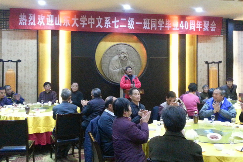 山东大学中文系七二级一班同学毕业40周年聚会活动选定在曲阜,是在全体同学充分酝酿的基础上确定的。1970年—1974年,山东大学的中文、历史、政治、外文等文科四系南迁曲阜,与曲阜师范学院合并组建新的山东大学。七二级一班同学的三年大学生活,有两年是在曲阜度过的。