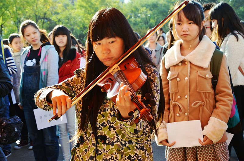 参与校庆、服务学校,“大学四年,难得遇上校庆”、“我想为校庆出把力”……自我介绍,动情动容;分享校庆、分享荣耀,“校庆丰富多彩,参与乐在其中”、“相信以自己的所学所长,一定能做出应有的贡献”……回答提问,自信大方。参加面试的同学,来自全校各学院各年级,以大一、大二为主,许多同学是现任各类学生组织的骨干;有几个学生社团还“抱团”面试,申请以承担项目任务的方式集体加入。记者看到,同学们对面试准备十分充分,跳着美妙的舞步、弹起拿手的乐器、亮出动听的歌喉,还有不少同学当场表演起了“达人秀”。有的抱来了自己的获奖证书,有的通过手机、平板电脑展示自己参加重大活动的图片或视频。其中面试摄影团队的一位山西籍女生,凭借在山西电视台实习期间的工作成绩,得到了面试官的当场肯定。