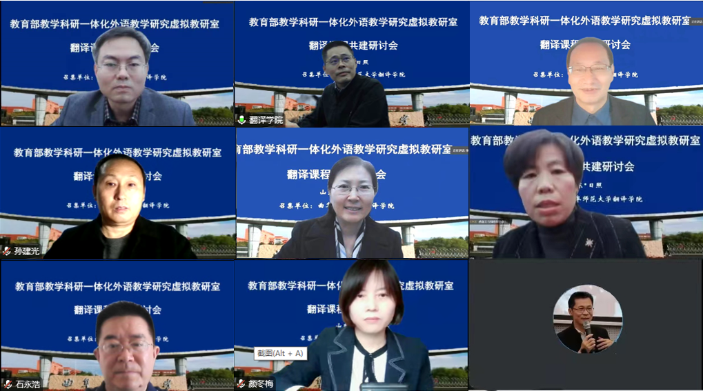 曲阜师大新闻中心讯(通讯员:夏云 编辑:孙红梅 责编:李文振) 日前,教育部教研一体化外语教学研究虚拟教研室翻译课程共建研讨会成功举办。本次研讨会由万象城手机网页版登录入口翻译学院主办,来自山东财经大学外国语学院、济宁学院外国语学院、广东财经大学外国语学院、万象城手机网页版登录入口翻译学院、淮阴工学院外国语学院的6位资深翻译课程主讲教师作了精彩分享。研讨会邀请到教研一体化外语教学研究虚拟教研室负责人、南开大学张文忠教授莅临指导,线上线下共有近百名教师参与了本次研讨。曲阜师大翻译学院院长夏云教授在开幕式上致辞。