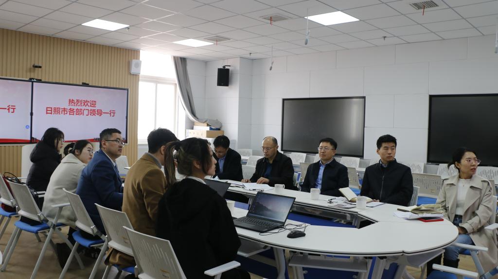 曲阜师大传媒学院讯  3月15日,日照市大数据发展局副局长张桂强、日照社科联副主席于曰斌一行到曲阜师大传媒学院,就日照市重大委托课题《日照市“两中心”融合现实依据与实施策略研究》项目开展调研,传媒学院党委书记王宏杰、副院长刘波、新闻系主任孙浩参加调研。