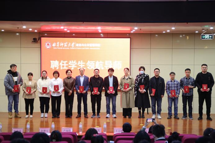 曲阜师大政治与公共管理学院讯   日前,政治与公共管理学院举行“双学导 双护航”2023年启动仪式暨“传承雷锋精神,践行立德树人”主题党日活动。学院各党支部党员、入党积极分子,以及2022级全体同学参与了活动。学院党委书记卢瑞霞在仪式上为学生领航导师颁发聘书,副院长李增元为朋辈护航学导颁发聘书。活动由学院党委副书记张忠凯主持。