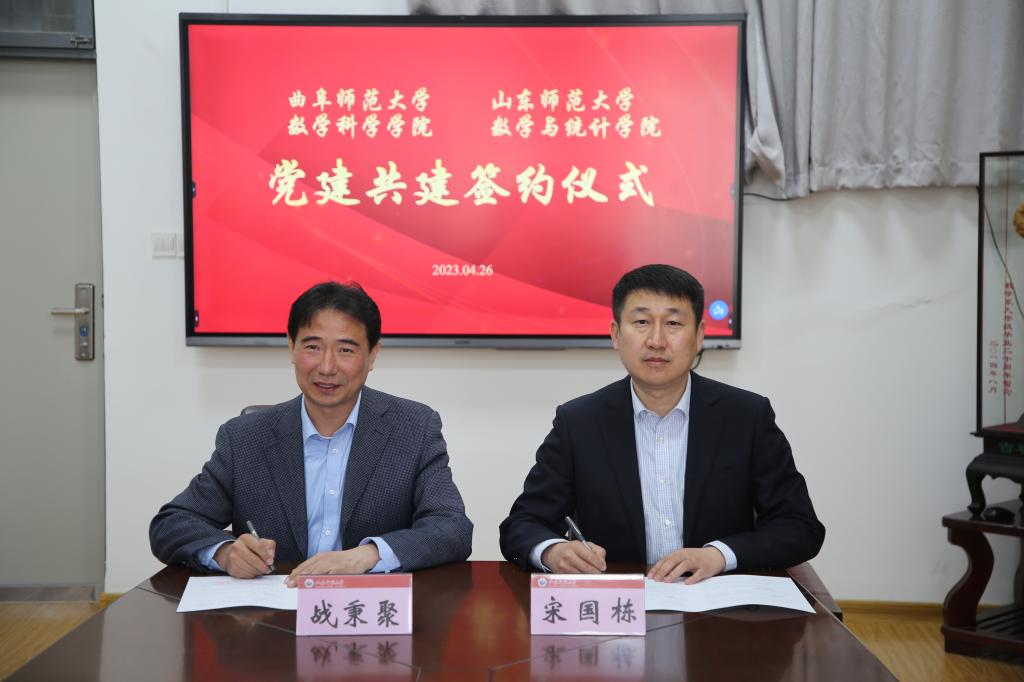 曲阜师大数学科学学院讯  为推动主题教育走深走实,数学科学学院党委开展“找标杆、大调研、建强院、促发展”调研活动。4月26日,数学科学学院党委书记宋国栋、党委副书记曲凤东、副院长王培合一行5人赴山东师范大学数学与统计学院举行结对共建座谈会并签订党建共建协议书。山东师范大学数学与统计学院党委书记战秉聚、院长李晓迪、党委副书记刘冬梅等热情接待宋国栋一行。