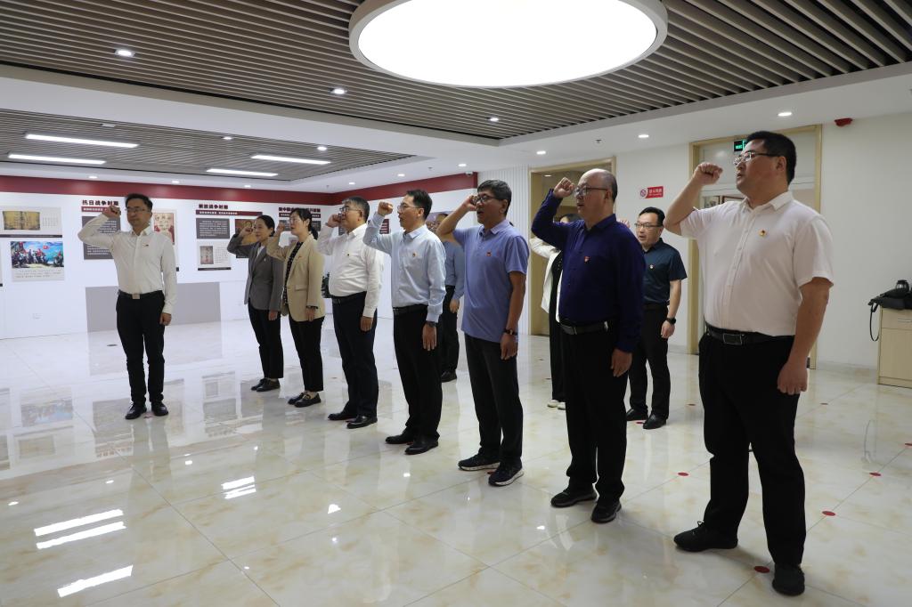 在泰安主题党日活动中心,党员们温党史、知党情,感悟革命精神,从党史中领悟初心使命,从党史中汲取不懈奋斗的力量。党员宣誓厅中,党员们面对党旗,高举右拳,重温入党誓词,以铮铮誓言表达了自己的决心和担当、坚定和无悔。在红色影院,大家共同观看了专题片《泰安胜利渠工程——为人民谋幸福》、参观学习了“全国优秀主题党日品牌展”“泰山——中华民族的精神家园展”等,深刻感悟共产党人不怕牺牲、前赴后继、接力奋斗的革命精神,进一步坚定了初心使命,增强了在新时代奋发有为的使命担当。