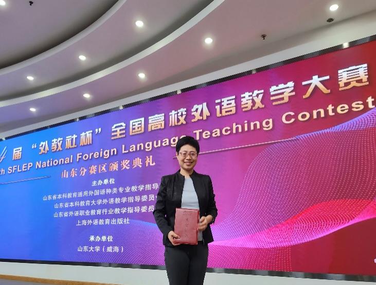 “外教社杯”全国高校外语教学大赛是我国外语界最具影响力的外语教学专项赛事之一,该赛事连续四年位居外语类大赛首位。本次比赛由山东省教育厅高等教育处指导,山东省本科教育通用外国语种类专业教学指导委员会、山东省本科教育大学外语教学指导委员会、山东省外语职业教育行业教学指导委员会、上海外语教育出版社联合主办,山东大学(威海)承办,本届赛事共有来自全省110所高校143个团队参赛。此次获奖是学院重视课程思政建设,积极推进教学改革的又一硕果。