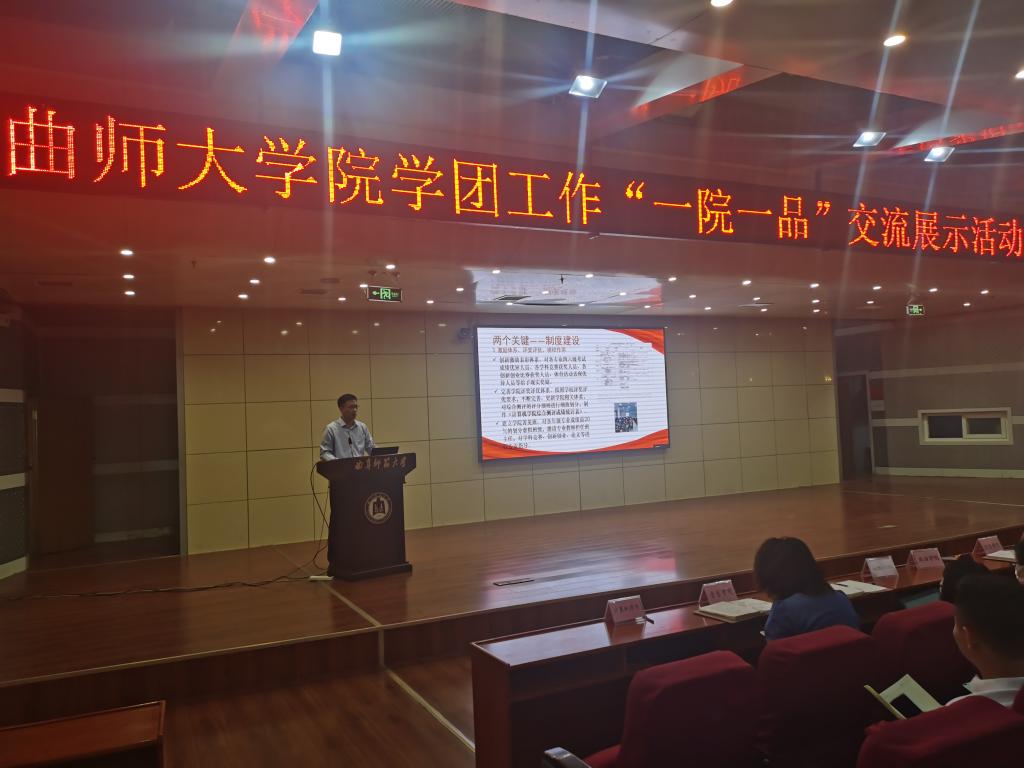 曲阜师大学生工作处讯  为加强调研分析,以交流反思促改革发展,5月26日,曲阜师大学院学团工作“一院一品”交流展示活动第二期开展,计算机学院、网络空间安全学院分别汇报了在学风建设和创新创业工作中的做法和经验。