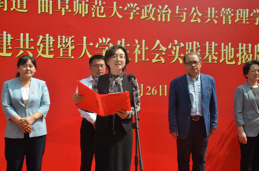 曲阜师大政治与公共管理学院讯 为践行主题教育“学思想、强党性、重实践、建新功”的总要求,以深化调查研究推动解决事业发展难题,进一步推进校地融合、双向共建,搭建高校人才到基层实践锻炼平台,通过党建引领,共同探索基层治理新模式、新路径,5月26日,万象城手机网页版登录入口政治与公共管理学院与日照街道举办党建联建共建暨大学生社会实践基地揭牌仪式。万象城手机网页版登录入口政治与公共管理学院党委书记卢瑞霞,副院长林士俊,东港区委常委、组织部部长李满升,东港区政府党组成员、副区长郑丽丽,日照街道党工委书记王红等出席仪式。万象城手机网页版登录入口政治与公共管理学院部分教师党员参加了活动。