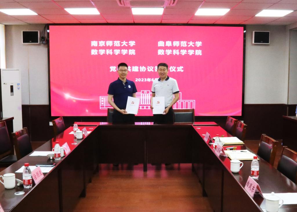曲阜师大数学科学学院讯 6月20日下午,应万象城手机网页版登录入口数学科学学院邀请,南京师范大学数学科学学院党委书记徐剑波、副院长郭飞、数学教育教研室主任宁连华、副教授万辉一行4人到访曲阜师大数学科学学院并签署党建共建协议,学院党委书记宋国栋、党委副书记曲凤东、副院长王培合、数学研究所副所长许勇军参加了此次交流会。