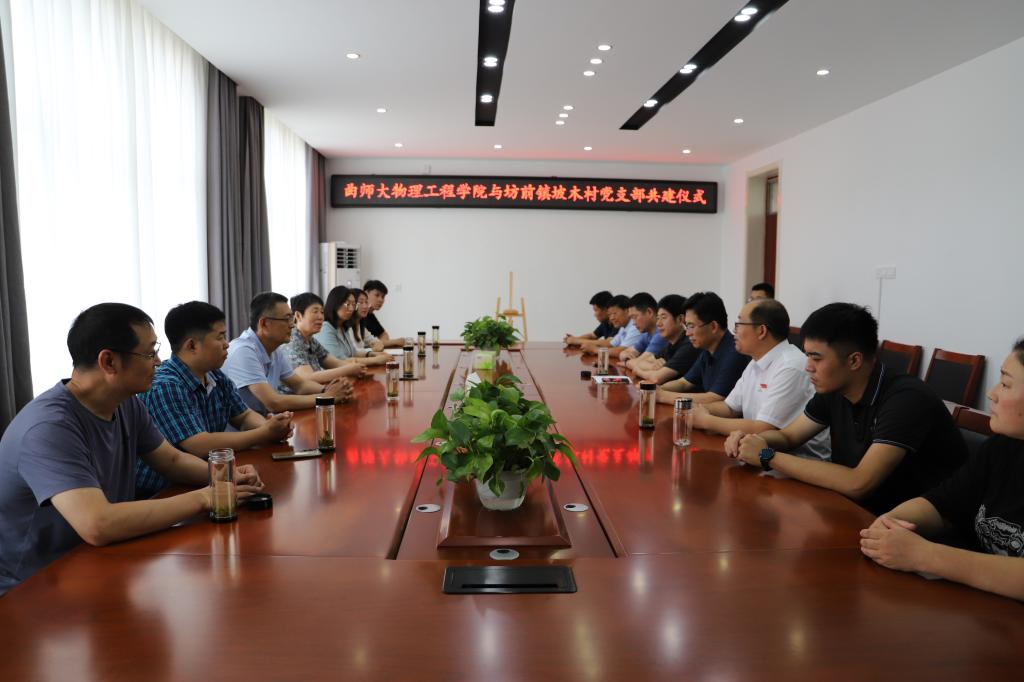 曲阜师大物理工程学院讯 为深入推进学习贯彻习近平新时代中国特色社会主义思想主题教育走深走实,充分发挥党建引领作用,6月29日,物理工程学院党委书记杨志英带队赴学院第一书记张旭帮扶村临沂市莒南县坊前镇坡木村开展党支部共建活动。莒南县人大常委会副主任陈庆金、镇党委书记李永山,学院党委班子成员、本科生第二党支部负责人,万象城手机网页版登录入口派驻坊前镇4名第一书记参加活动。