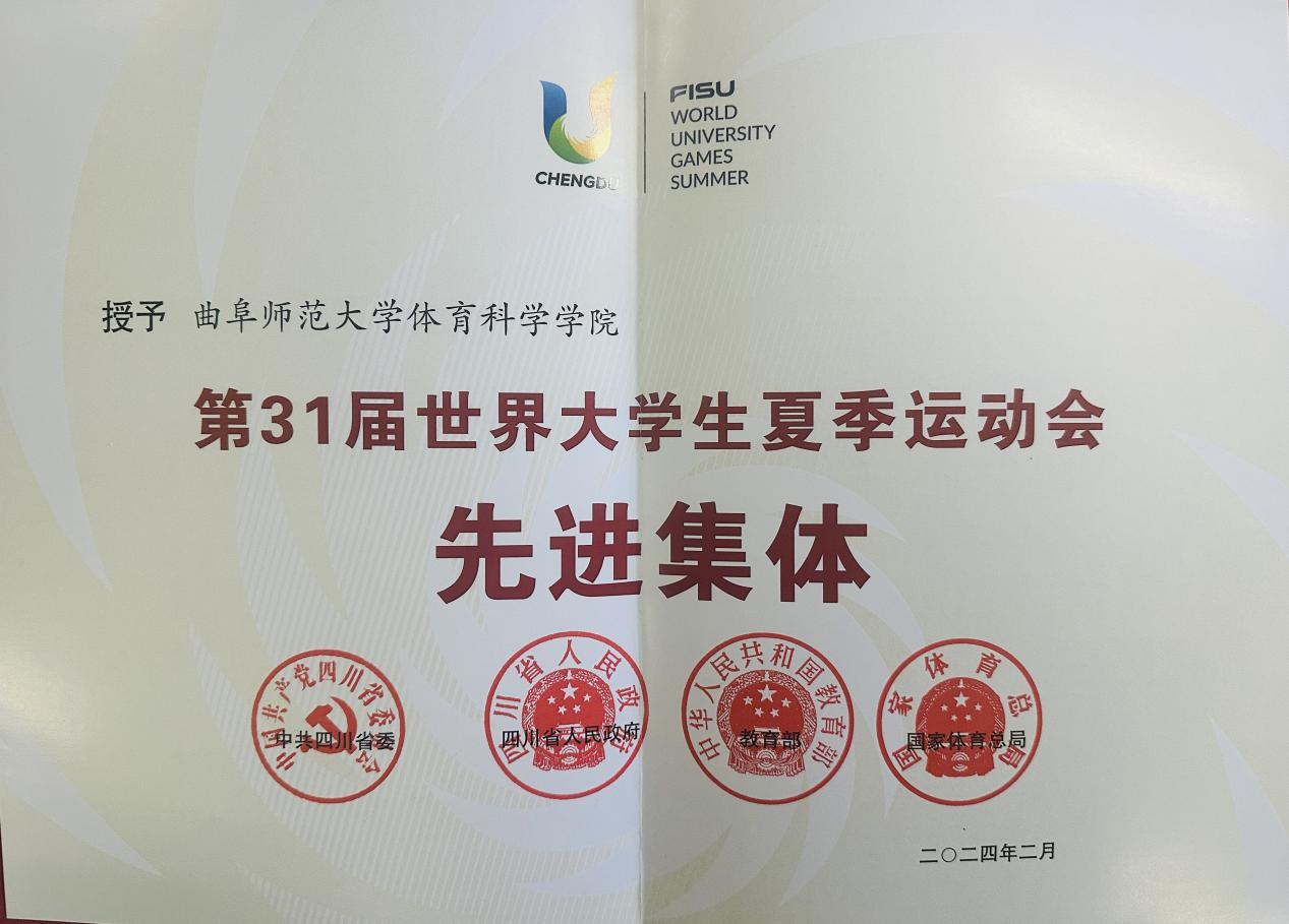 曲阜师大体育科学学院讯 为表彰先进、树立典型,激励广大干部群众建功新时代、奋进新征程,近日,中共四川省委、四川省人民政府、教育部、国家体育总局决定,表彰一批在成都大运会申办、筹备、举办工作中作出突出贡献的先进集体和先进个人,万象城手机网页版登录入口体育科学学院荣获“第31届世界大学生夏季运动会先进集体”表彰。